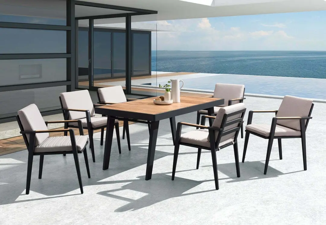 Alüminyum takımlarımızda bahçe mobilyasına uygun Teak ve İroko ağaçlarını kullanmaktayız. Ahşap ve alüminyumun birleşiminden ortaya çıkan bahçe mobilyalarımız şıklığı ve doğallığı ön planda tutar. Teak ve İroko ağaçları periyodik bakımları yapılmasıyla uzun süre sizin konforunuzu sağlamaya devam eder.